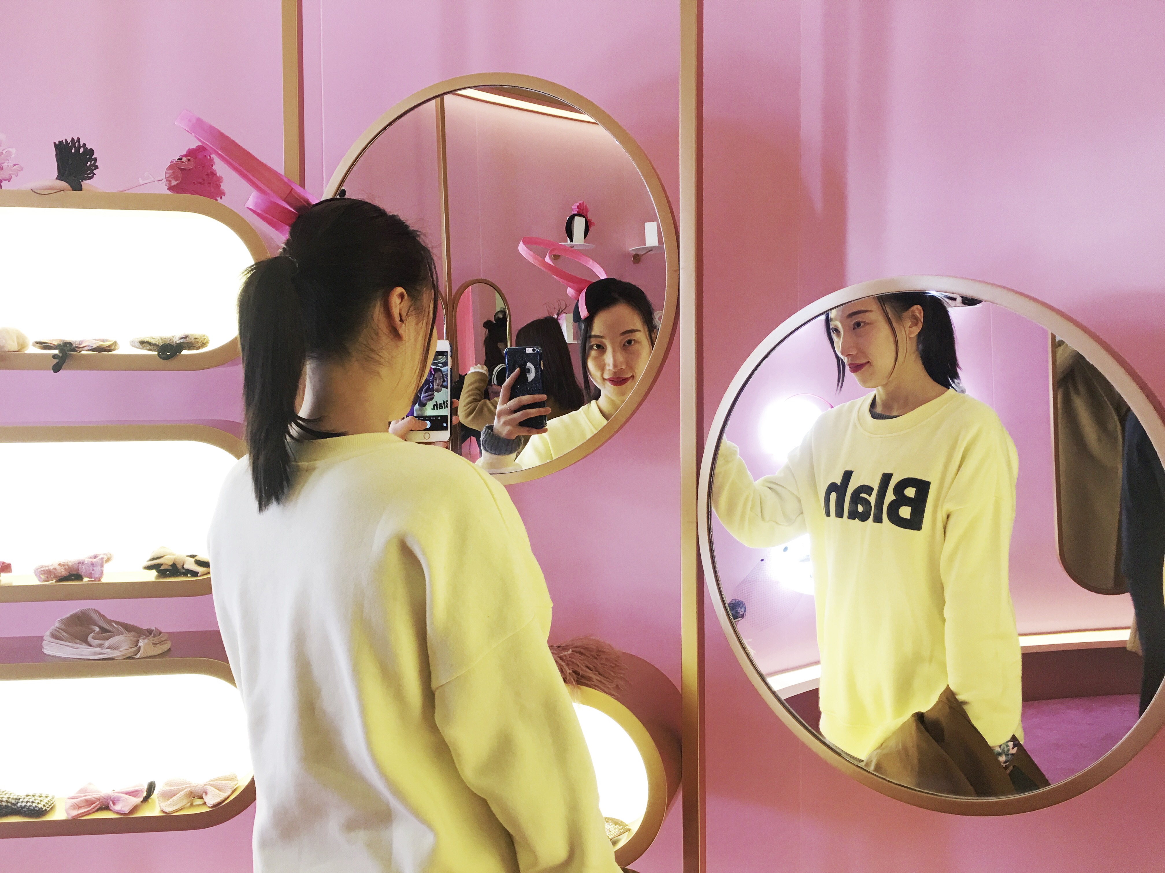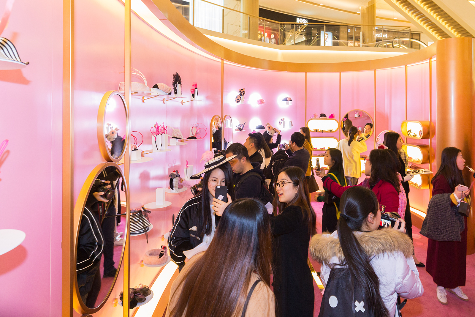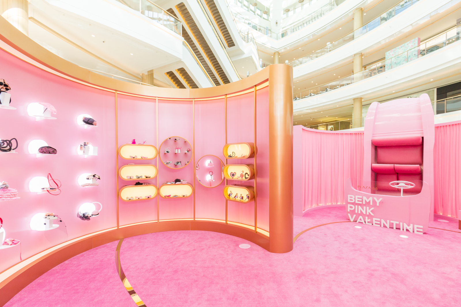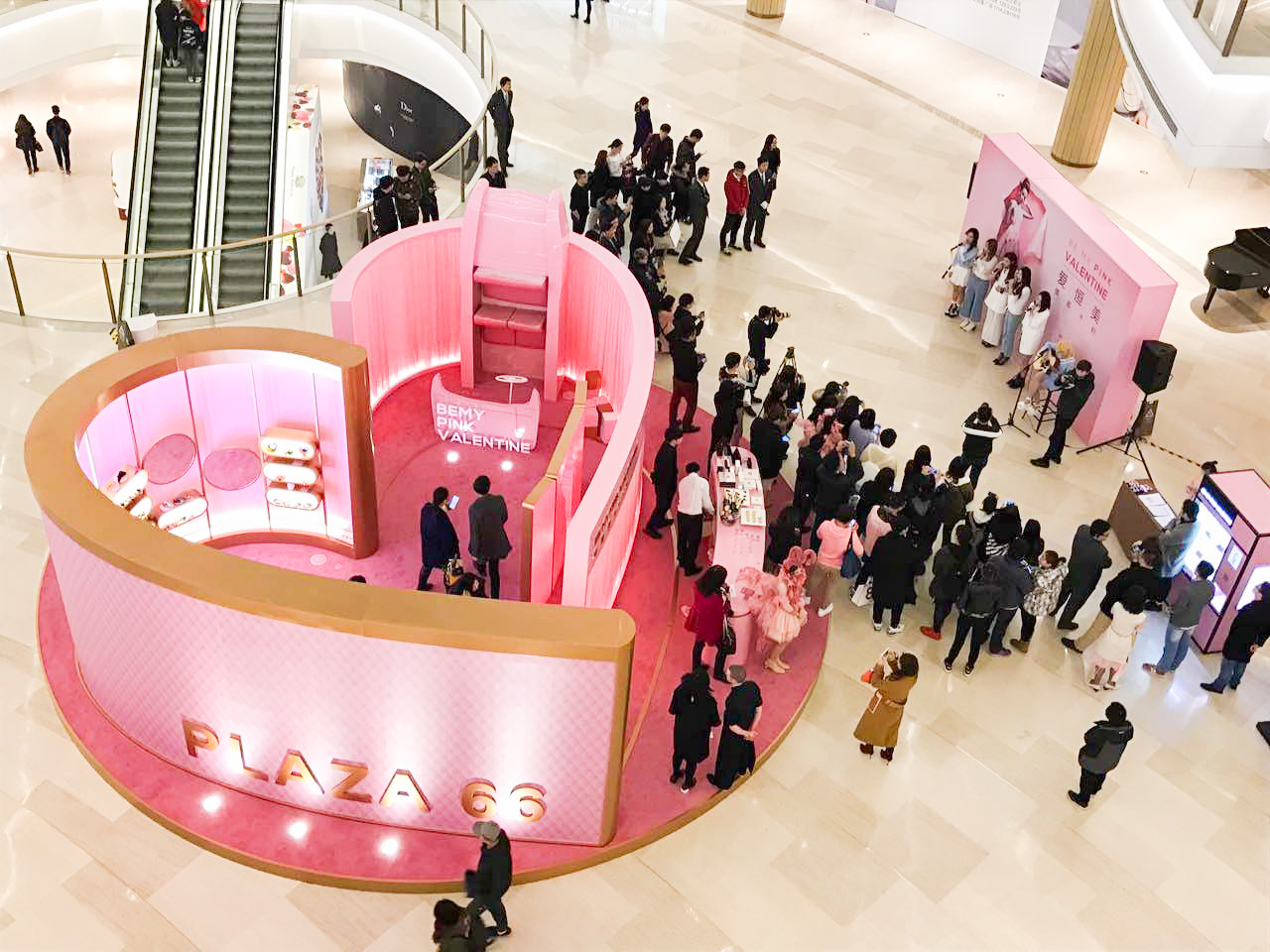商场中庭的粉色时尚装置吸引宾客驻足