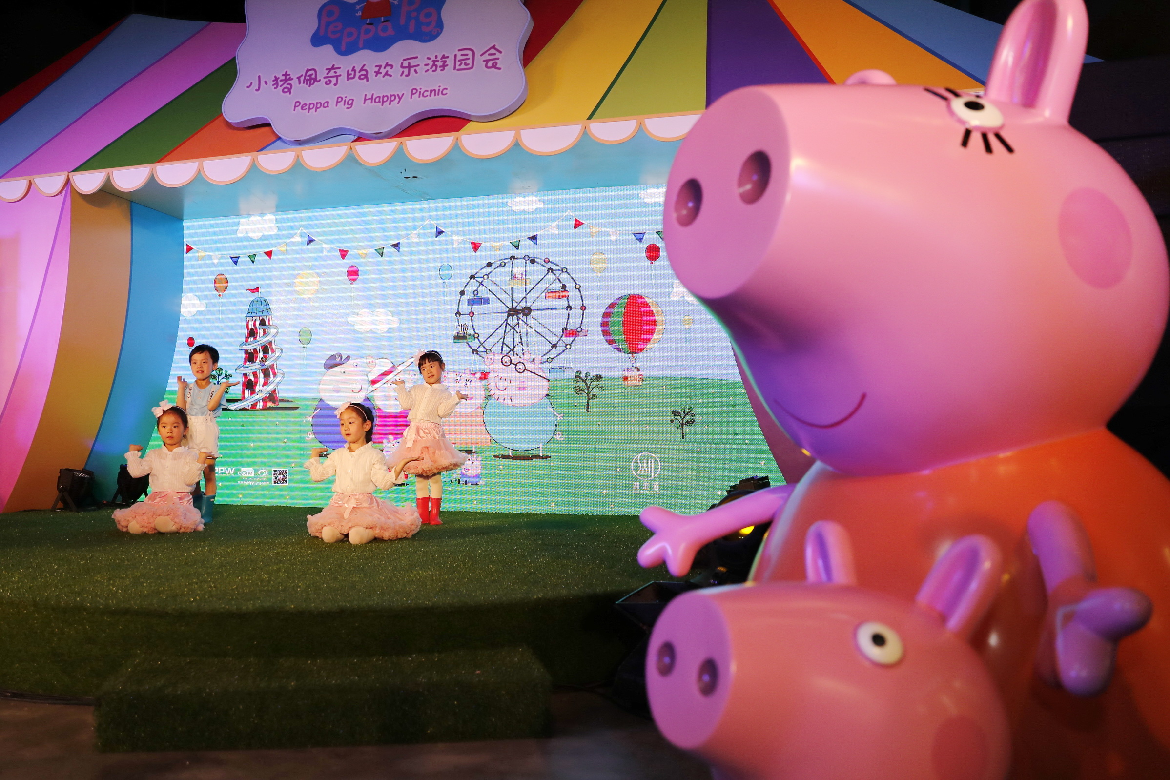 日前,大陆地区首个英国学龄前动画片《小猪佩奇》主题展——“小猪佩奇的欢乐游园会”于上海新天地湖滨道购物中心正式开幕。