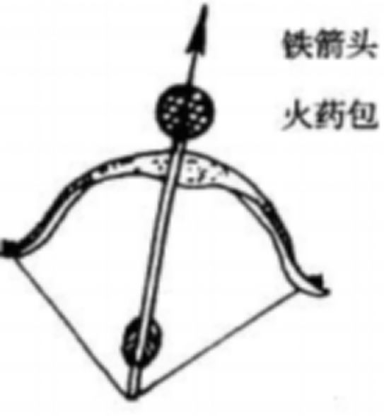 火药在军事上的应用,最初是为了取代草艾、油脂等作为火攻之时所采用的燃烧物质。如《九国志》记载“以所部发机飞火,烧龙沙门”,其中“飞火”所指的就是捆绑着火药的箭矢。除了这种火箭以外,还有将火药以及助燃物包裹为球状通过投石机抛投的应用方式。