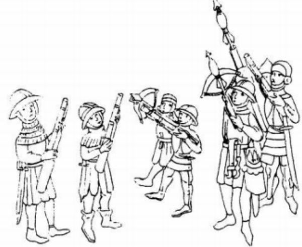 十五世纪中期,德意志军队中手持枪与弩均在服役