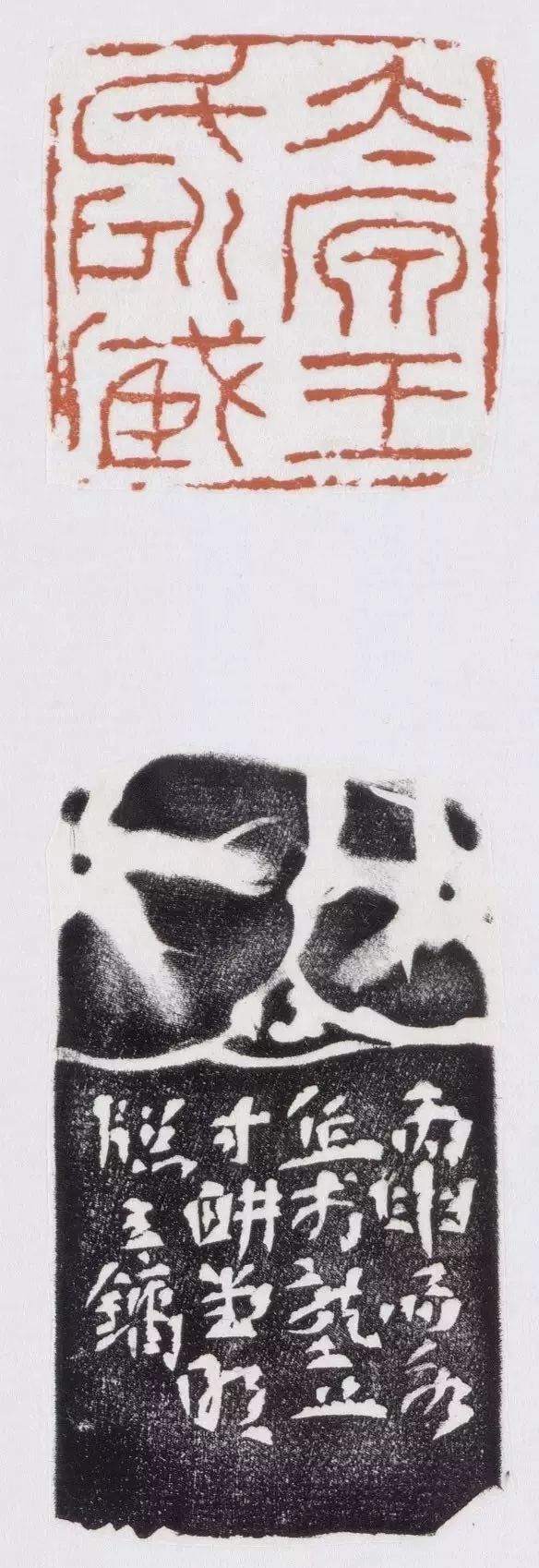我认为陶土没有很特殊的地方,只是材质上不一样,如果在创作中能把握住它的特点,就会产生一些在石头上不太容易出现的效果,特别是出现写意的效果使用陶土更加容易一些,如果刻特别工整的东西则没必要用陶土。最近好多地方都搞过陶印的展览,以后做陶印的可能还会有不少人。当然,它也有其缺点。比如刻石头印吧,刻完一个马上就能看出效果。但陶印不行,不能刻完一个马上就去烧,要等刻完好多个才能去烧,这也是它的一个局限性吧。同时,陶印用起来有时也会出现不理想的效果。由于质地较松,蘸完印泥后,印泥能吃进去,然后就会影响铃盖的效果。用完后擦洗也较费劲。