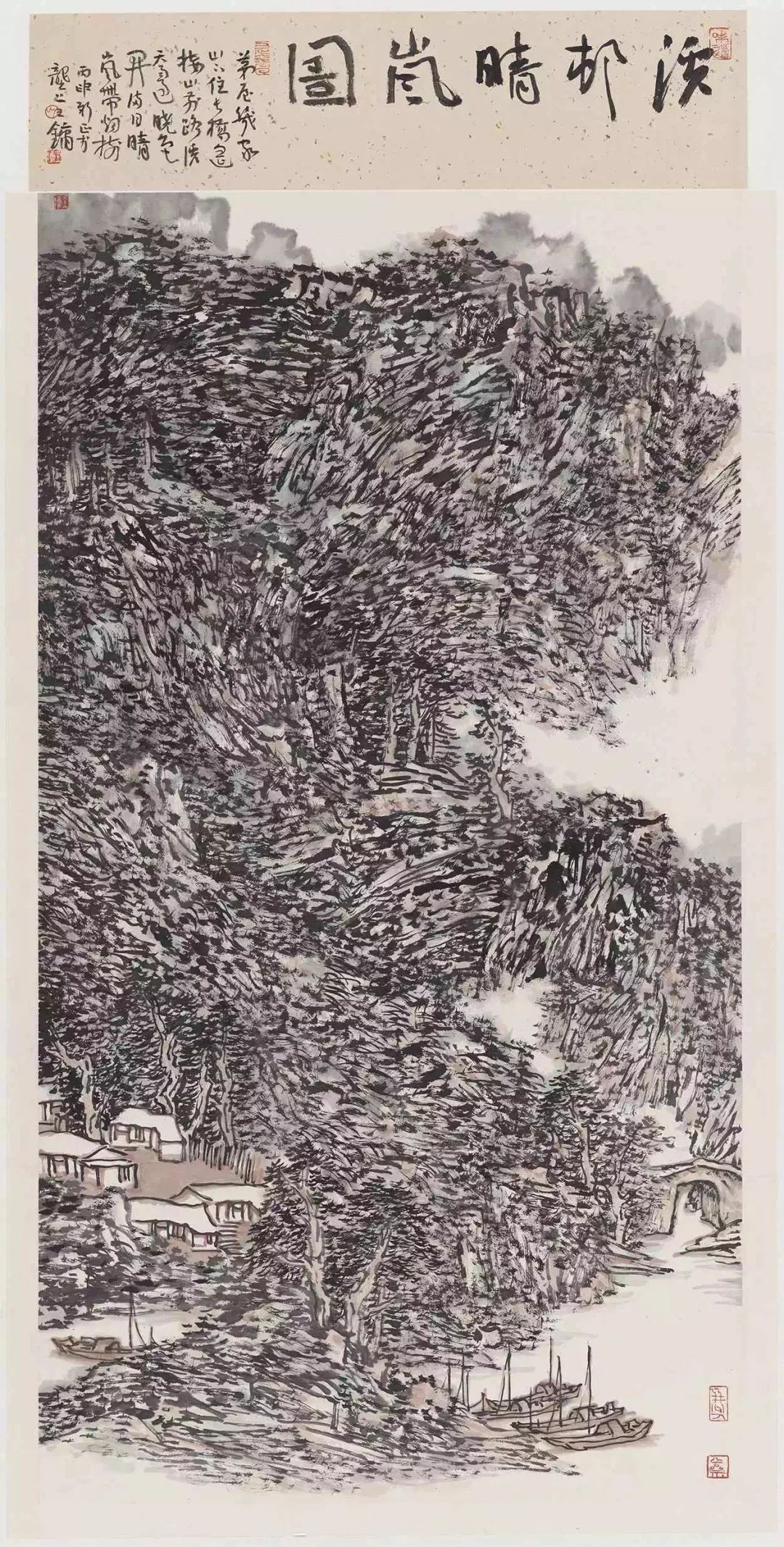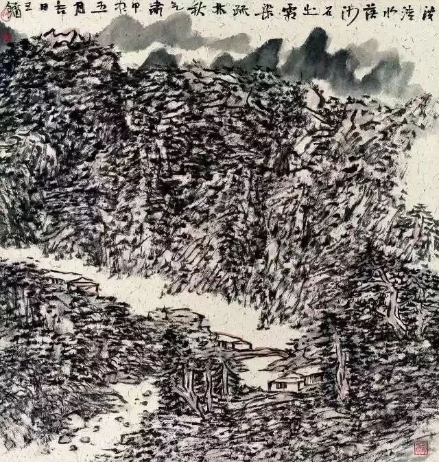 比如泼、染这种手法,我觉得是比较低级的。谁泼谁染都是一大片,这个东西无个性可言。西画叫笔触,中国是用笔,就是点、线这种东西最能集中地、最强烈地体现出你对美的认识,怎么把它表现在纸上,这是最强烈的一个东西。黄宾虹的画表面上看是一片,你去看他的原作,那里头一层层的,全是积点积线,他很少是大面积的积染。即使最后为了统二回面的调子,尤其是晚年,用那种渍墨、宿墨,或者用很脏的洗笔水进行渍染,也不过是画面的辅助手段。但是有很多人弄颠倒了,把那种东西弄成主要的表现手法。基于这点考虑,我觉得既然点、线是最强烈的、带有个人印迹的表现手法,那就把它强化一些,把其他的手法减掉一些,或者少用一些。