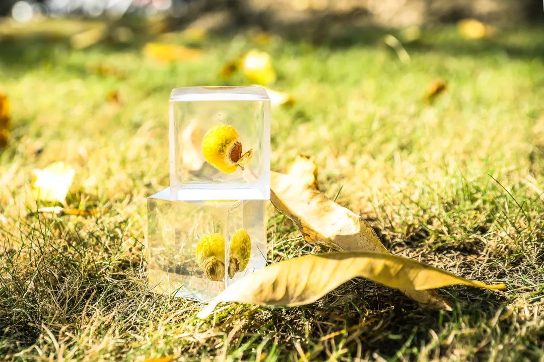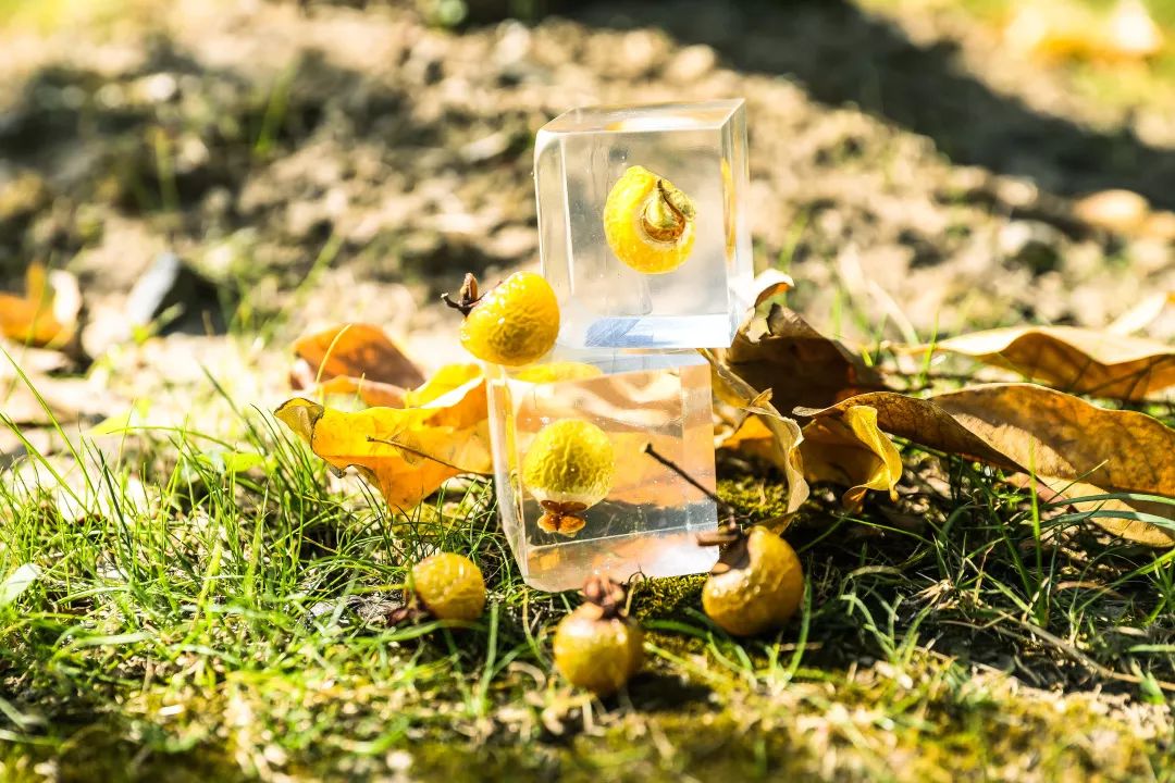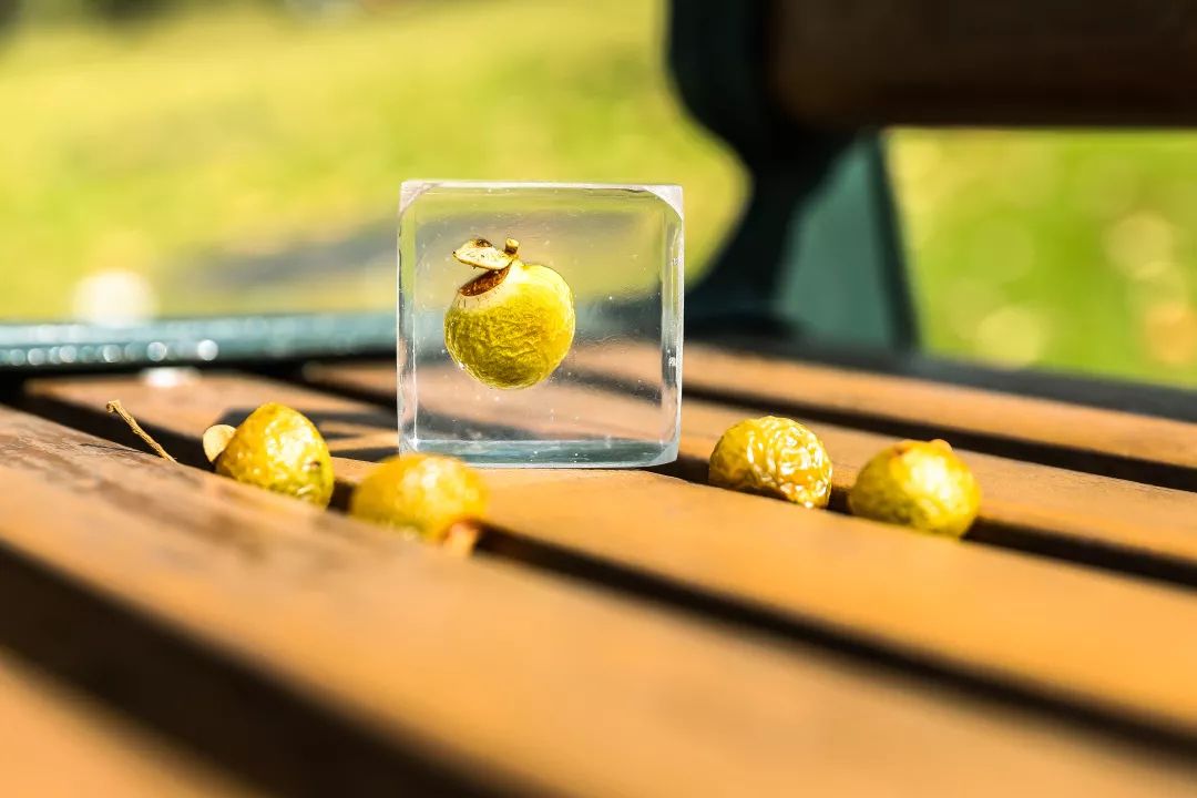 5. 待树脂凝结后,植物琥珀标本就做好啦~