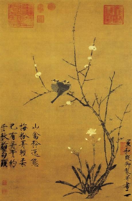宋 赵佶 《腊梅山禽图》 绢本设色 纵82.8厘米 横52.8厘米