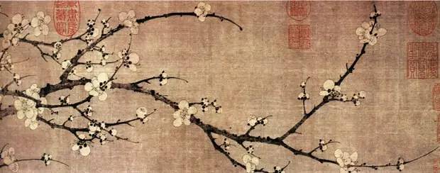 有梅之记,始见于《西京杂记》汉初修上林苑,远方各献名果异树,有‘朱梅’、‘胭脂梅’。迄今2000年矣。梅入画,有史载始于南北朝,至宋僧仲仁方盛,称“墨梅始祖”。
