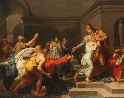 安托万·让-巴蒂斯特·托马曾在弗朗索瓦·安德烈·文森特的画室学习。1816年凭借此画,他击败了同样参赛的泰奥多尔·席里柯,成功折桂。在他的这件罗马奖获奖作品中,我们已可以感受到浪漫主义的气息。