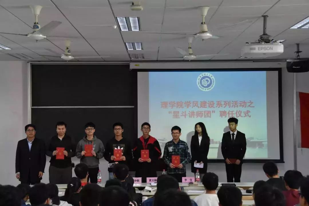 理学院 理学院举办“星斗讲师团”聘任仪式,邀请优秀学生组成讲师团体,致力于发挥朋辈的榜样力量和引领示范,为营造良好的学习氛围、打造学生典型、提升学生综合能力、提高人才培养质量打下坚实基础。