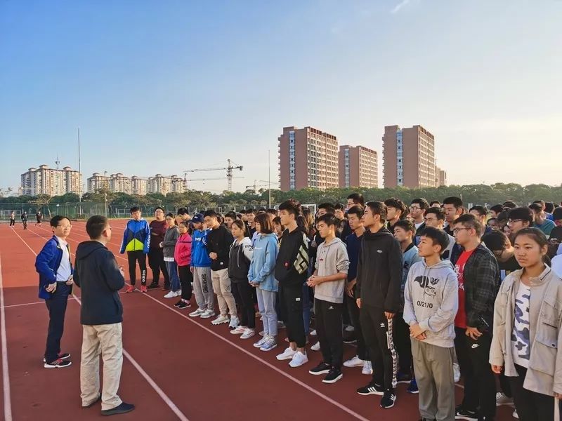 资环学院 资环学院举行“健康晨跑 快乐学习”活动,2019级187名学生踏着晨曦、迎着朝阳,齐聚奉贤校区田径场,与学院党委副书记饶志雄、副院长孙贤波、年级辅导员王青、班导师代表蔡正清等老师一起参加晨跑。