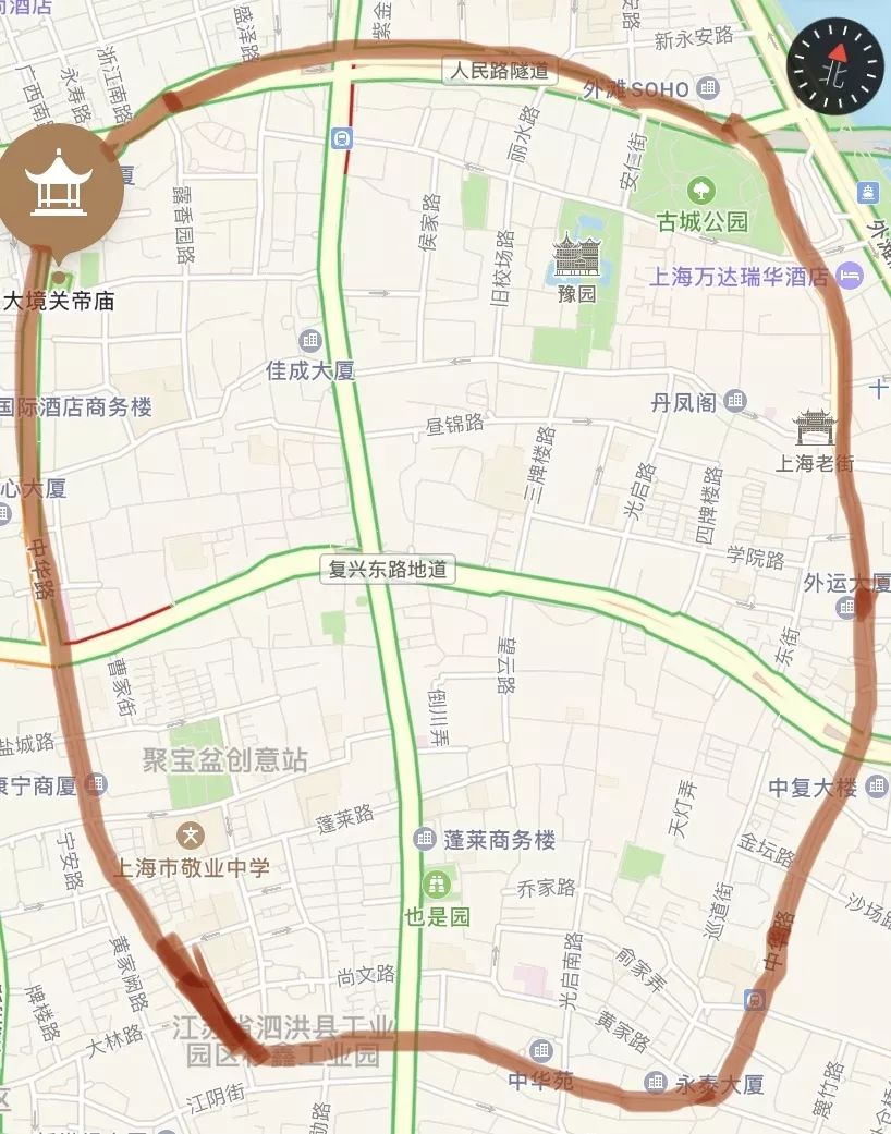 上海有两条特殊的马路,论路龄不过百年,论繁华远不及南京路、淮海路;然而论前世,它们则是上海从普通江南水乡到城厢,再到都市的变迁见证者。从空中鸟瞰,两条马路在黄浦江西侧首尾相接成了一个圈,宛如上海市中心一枚硕大的“钻戒”,最耀眼的“钻石”便是大境阁。这两条马路便是“人民路”与“中华路”。