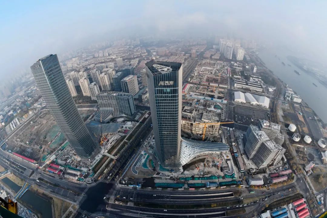 2019年12月16日,云锦路龙耀路口,建设中的徐汇滨江“西岸传媒港” 图片摄影 | 杨焕敏