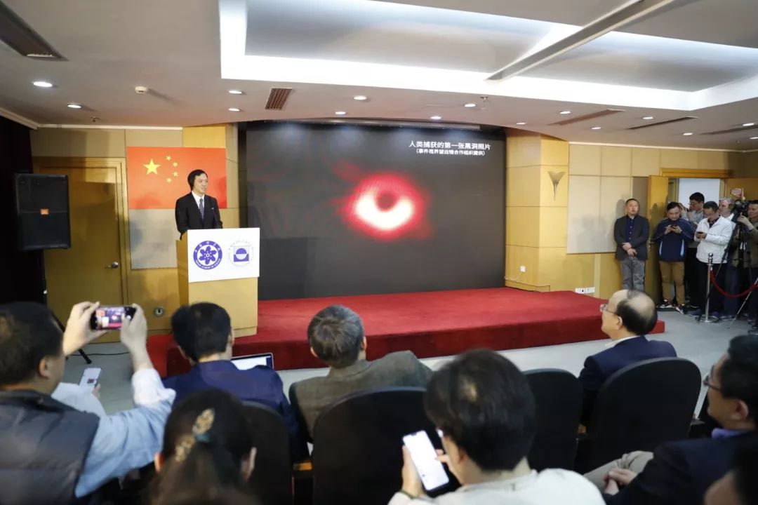 2019年4月10日,中国科学院上海天文台在天文大厦与全球其他五地同步发布人类首张黑洞照片 图片摄影 | 袁婧