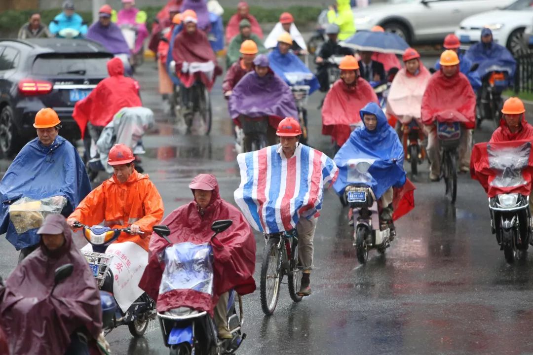 2019年6月20日,路人穿着各式雨衣在雨中骑行。上海2019年梅雨期达33天,是20年来最长、最强梅雨季,被市民戏称为“流浪的太阳” 图片摄影 | 王溶江