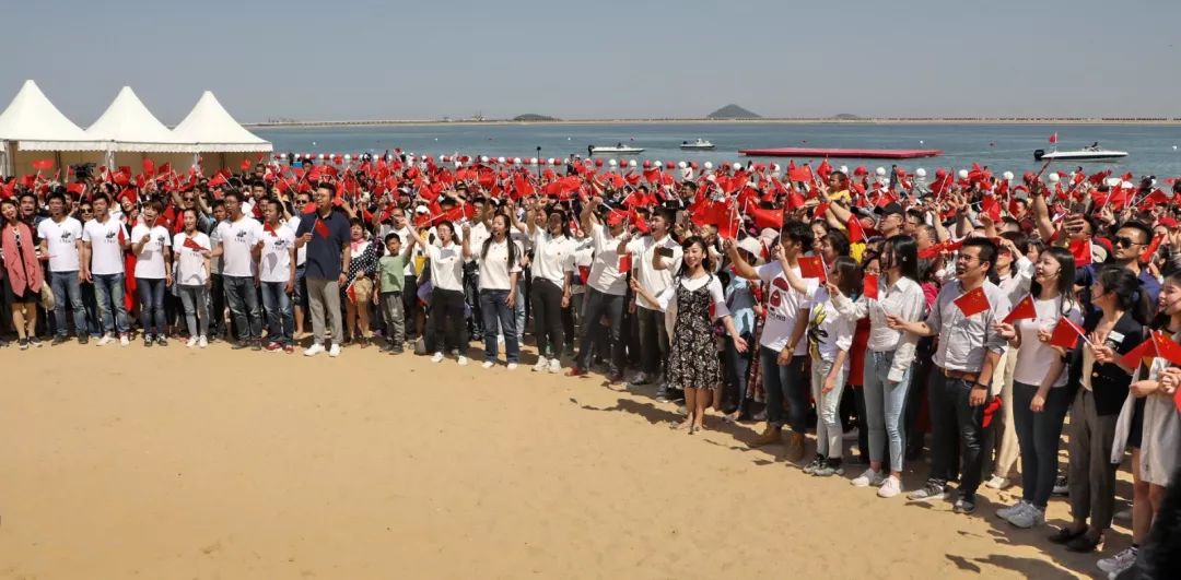 2019年5月3日,金山区“我和我的祖国”快闪活动在城市沙滩举行 图片摄影 | 庄毅