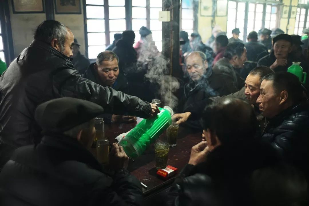 2019年2月1日,清晨,金泽古镇百年老茶馆“状元楼”中,老茶客们三五成群,喝茶聊天 图片摄影 | 崔铁军