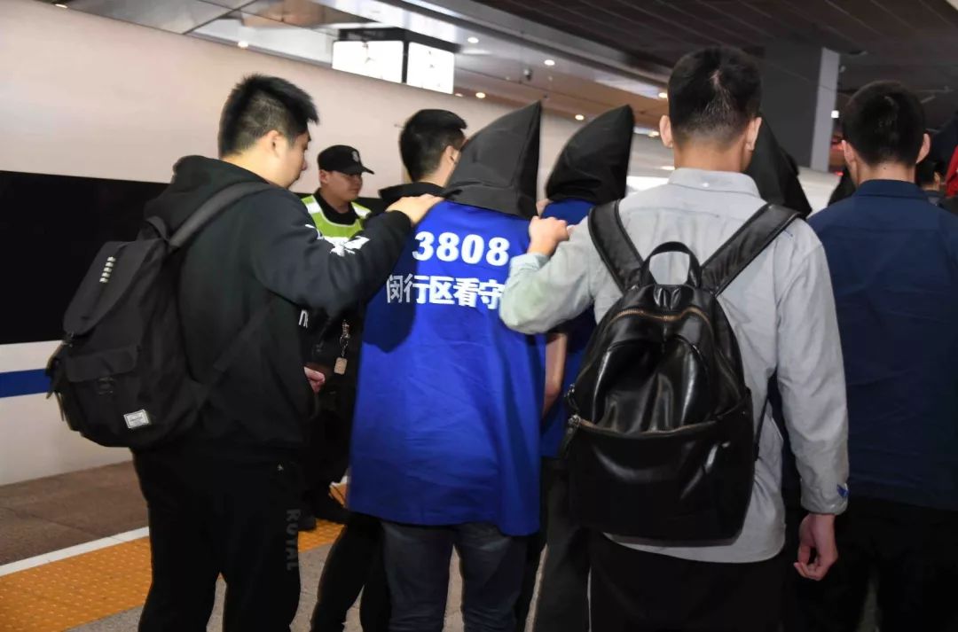 2019年4月17日,上海市公安局闵行分局侦破一起电信网络诈骗案,捣毁一个长期在网上以 “创业开店”为名实施诈骗的犯罪团伙。专案组民警从广州将40名犯罪嫌疑人捉拿归案,押解回沪 图片摄影 | 赵立荣