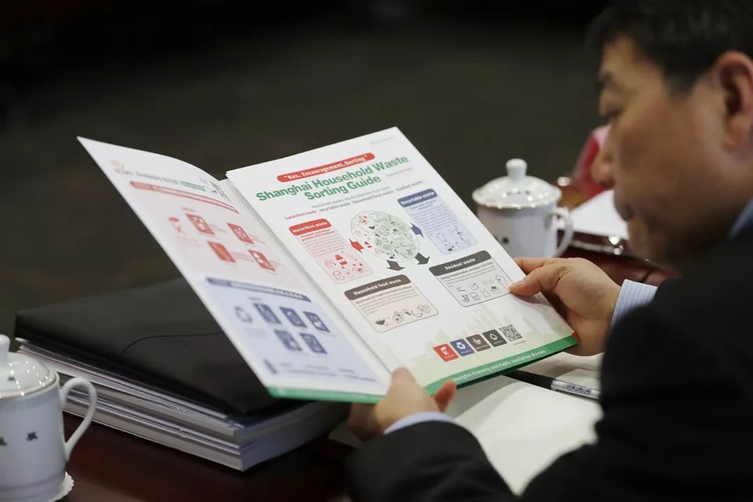 2019年1月28日,上海市两会代表们仔细阅读生活垃圾分类宣传资料 图片摄影 | 袁婧