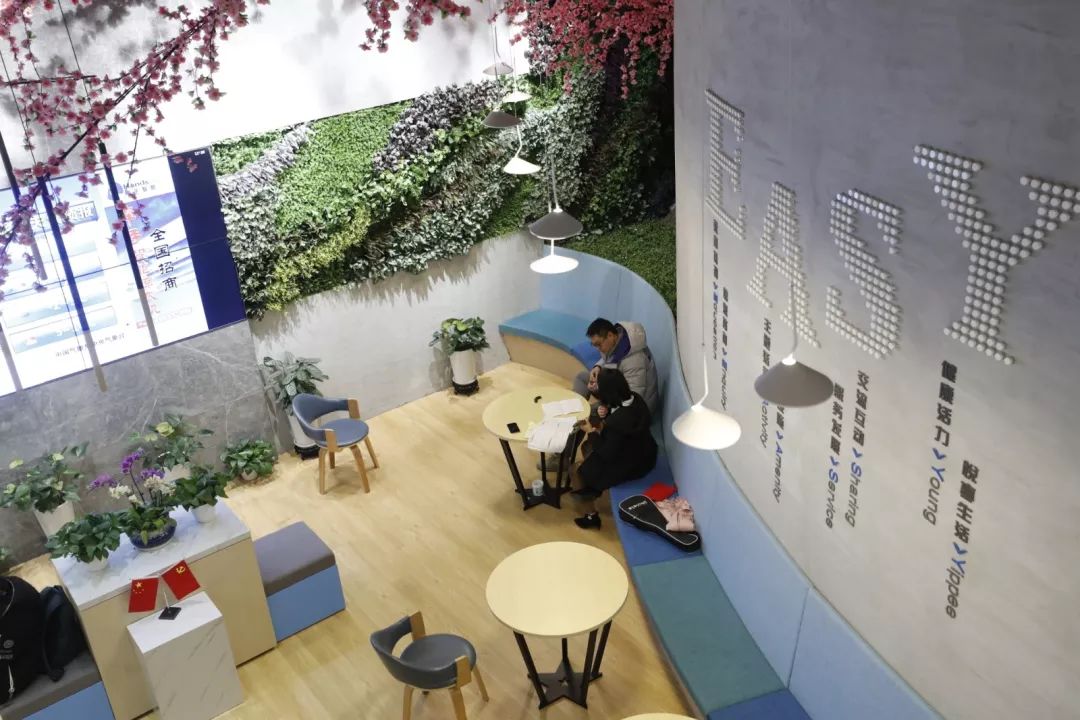 2019年1月2日,新年首个工作日,周边商务楼宇中的白领们在虹桥党建之家内午间小憩 图片摄影 | 袁婧