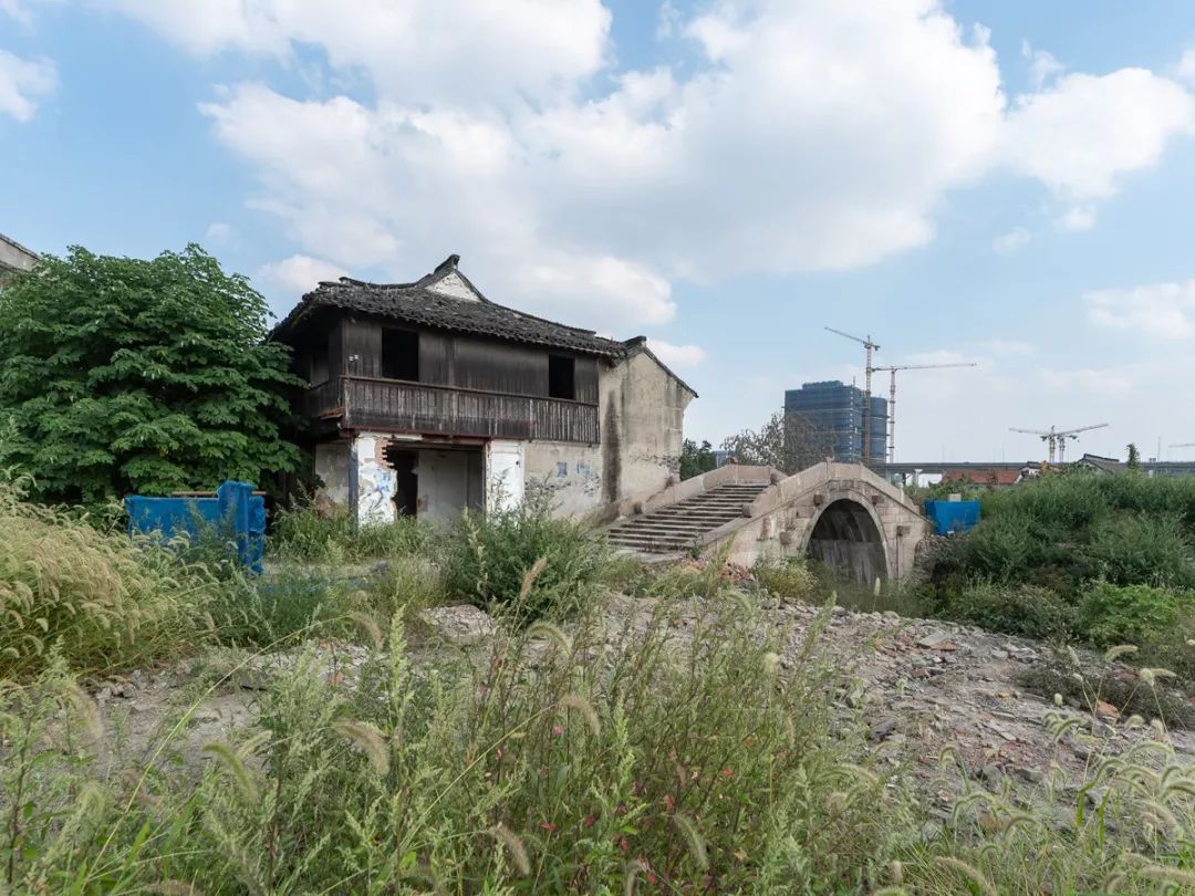 2019年9月28日,位于青浦区徐泾镇蟠龙村的文物保护建筑蟠龙庵和香花桥。在其东南方不远处就是“大虹桥区域”建设工地 图片摄影 | 席闻雷