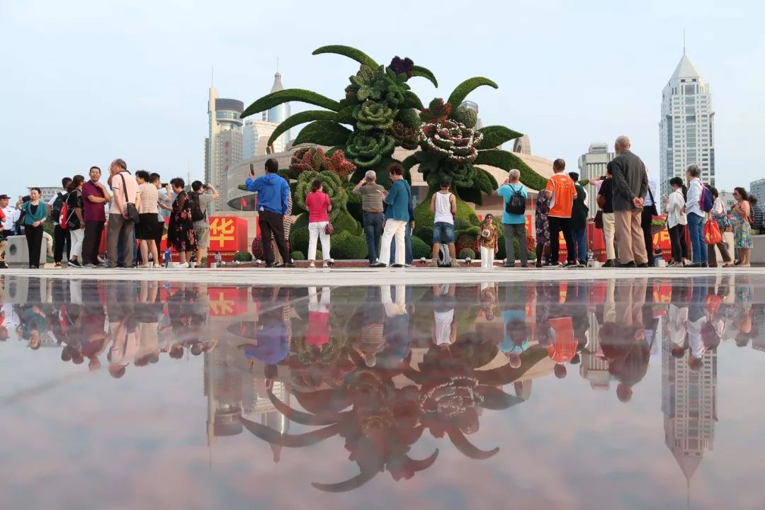 2019年9月30日,经过升级改造的人民广场音乐喷泉、立体花坛全新亮相,为国庆佳节增添喜庆气氛 图片摄影 | 王溶江