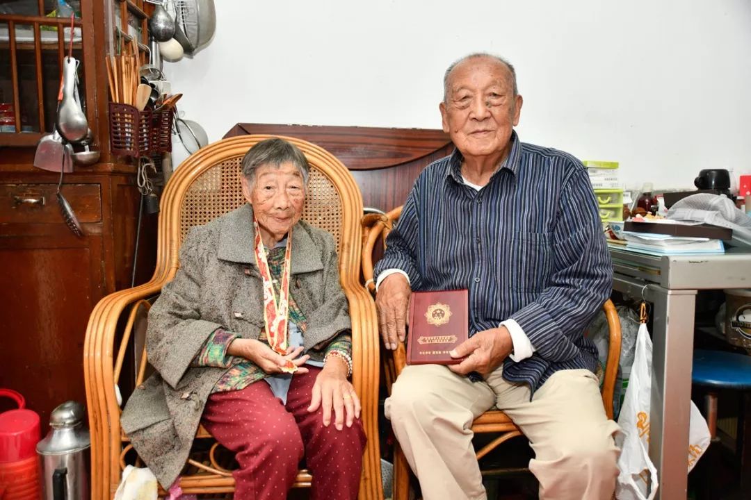 2019年9月29日,居住在杨浦区现年93岁的于先生,1946年参加革命,先后参加过解放战争和抗美援朝战争。2019年国庆前夕,他收到中共中央、国务院和中央军委颁发中华人民共和国成立七十周年纪念章,并与老伴一起分享这一光荣时刻 图片摄影 | 胡海宝