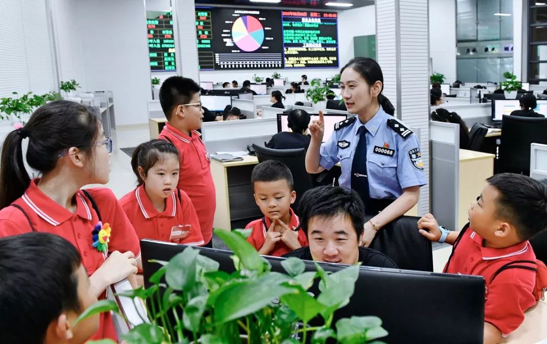 2019年8月6日,一群小学生正在市公安局110指挥中心参加暑假体验活动,指导老师的生动讲解和各类先进设施引起孩子们的浓厚兴趣 图片摄影 | 杨焕敏
