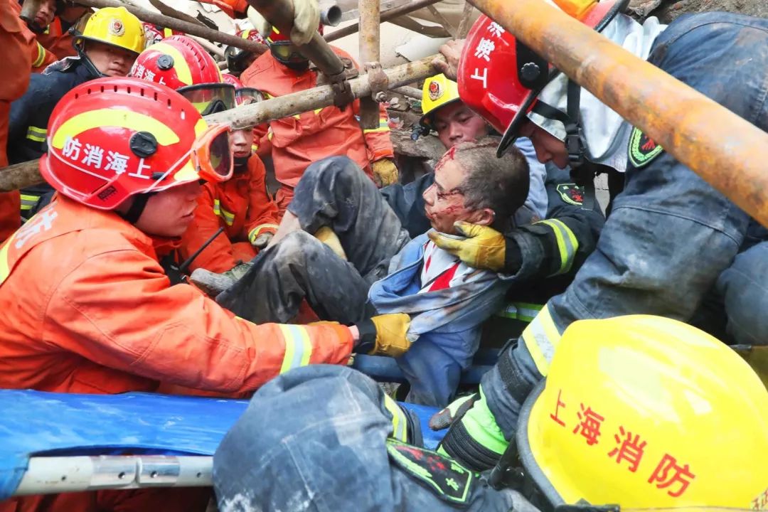 2019年5月16日,长宁区昭化路一工地发生坍塌事故,应急抢险部门及时赶到现场救援 图片摄影 | 赵立荣 张建东