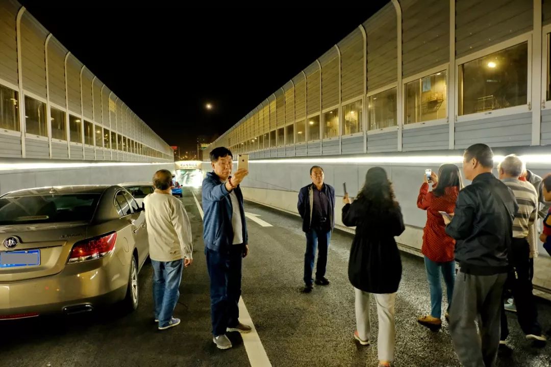 2019年10月31日,傍晚,周家嘴路隧道通车在即,市民争相留影纪念 图片摄影 | 蔡耀放