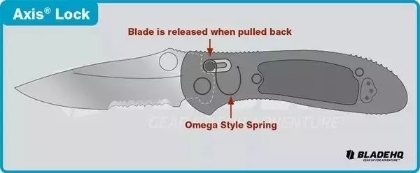 背锁算是市场上最古老的锁定结构了,它甚至比线锁还早。由于它的简单性,背锁有许多支持者。现在生产背锁折刀的厂家最有名的应该就是 Spyderco 了,另外 Buck 110 也是很出名的背锁折刀。 4、轴锁