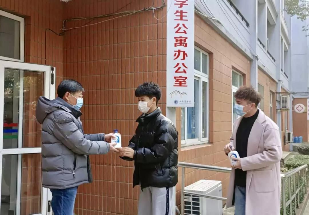 学校为留校学生发放消毒洗手液、口罩等防疫物品 今年寒假留校学生小刘感慨地说:“学校做了很多防护措施,我感觉得到了很好的防护。寝室阿姨每天都会给学生一个口罩,并签到,也会和值班学生清查寝室楼的学生人数,每一个寝室都询问到位。此外,每个寝室都发了一瓶健康抑菌洗手液。班群里还统计了每个班的是否在沪学生人数,学生的动态变化要及时向班长团支书汇报,对曾经到过武汉的学生也进行了统计。辅导员也发了很多有关肺炎的相关信息和防护措施,大家都很温暖。”
