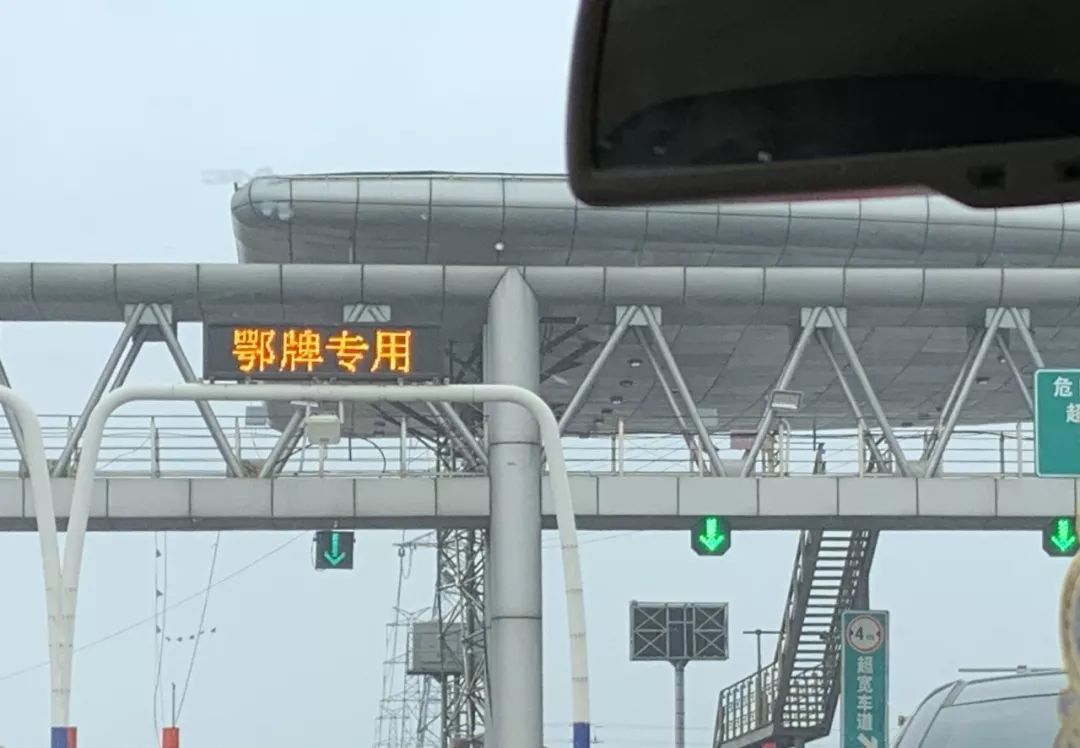 路上的车辆逐渐分散到十数个车道,包括一条“鄂牌专用”车道。