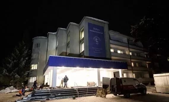 疗养院周围被围栏围住, 俄罗斯国民警卫队的士兵负责把守。