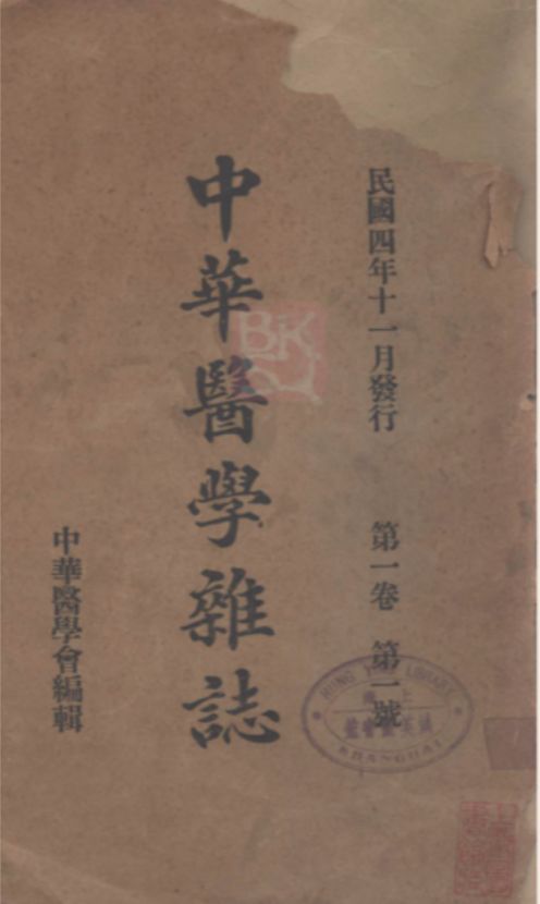 1915年11月创刊于上海,中英双语,英文刊名为“National Medical Journal of China”。 该刊于1920年被美国 Chemical Abstract 收录,1927年起被美国医学会 Quarterly Cumulative Index Medicus 收录,是中国最早被国外医学索引收录的中文医学期刊。 1951年,《中华医学杂志》随中华医学会迁往北京编辑出版,迄今已出版近百卷。 该刊是中华医学会创办的专业综合型医学刊物,是我国创刊较早的自然科学学术期刊之一,主要以医药卫生专业人员为读者。该刊登载有:反映国内医学科学发展的新进展、新成果的各类研究论文,国外医学代表团访华时所作的学术报告,对国外医学研究新技术的介绍,重要的医学书刊评介等等。 《中华医学杂志》作为一份专业性较强的医学类刊物,出版时间几乎横跨整个民国时期,且每期体量大,馆藏资源丰富。该刊登载的大量医学研究、会议报告等国内外医学知识、信息,对中国医学史研究具有重要的史料参考价值。 )