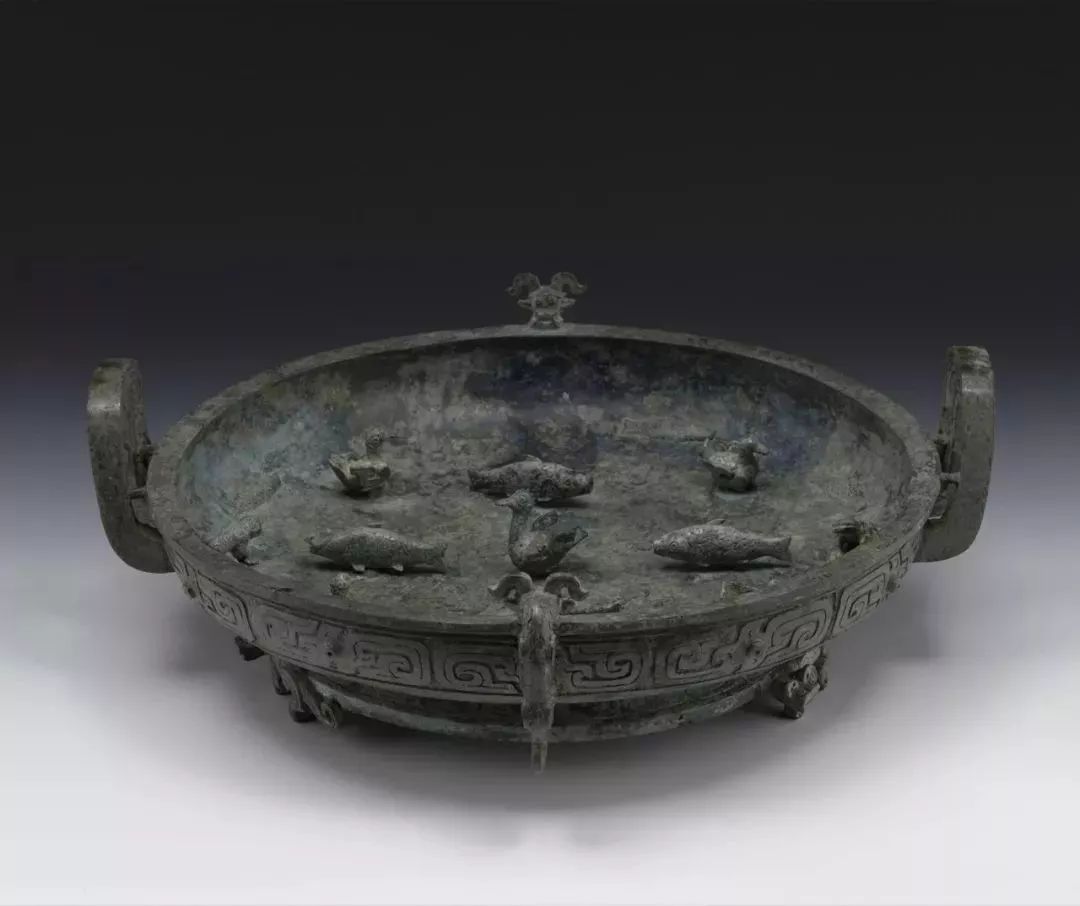 当仲姜使用这件青铜盘净手时,盘上的每个圆雕动物会随着水的注入作平面360度旋转,鱼禽如游弋其间,是前所未有的绝妙创造,克服了合范浇铸时活动件粘连的技术难题,也令人在千百年后感受到晋国大师对夫人的缱绻爱意。