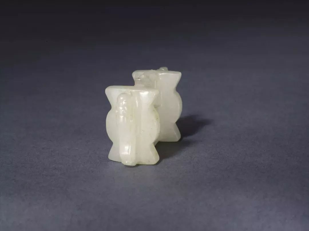 合卺杯是什么样的呢?东汉郑玄、阮谌合著的《三礼图》中载:“合卺,破匏为之,以线连柄端,其制一同匏爵。”可见早期的合卺杯应是一剖为二的葫芦瓢,夫妻端起后各饮一端。到了明代,胡应麟的《甲乙剩言》中说合卺玉杯:“形制奇特,以两杯对峙,中通一道,使酒相过。两杯之间承以威凤,凤立于蹲兽之上。”有趣的是,从东周(如包山楚墓漆合卺杯、满城汉墓青铜合卺杯等)直到清代(如此件犀角合卺杯),主流的合卺杯形制皆是如此,即两个圆柱形杯子相联,装饰以姿态威武雄武的凤鸟(或曰鹰)踩在一兽之上。