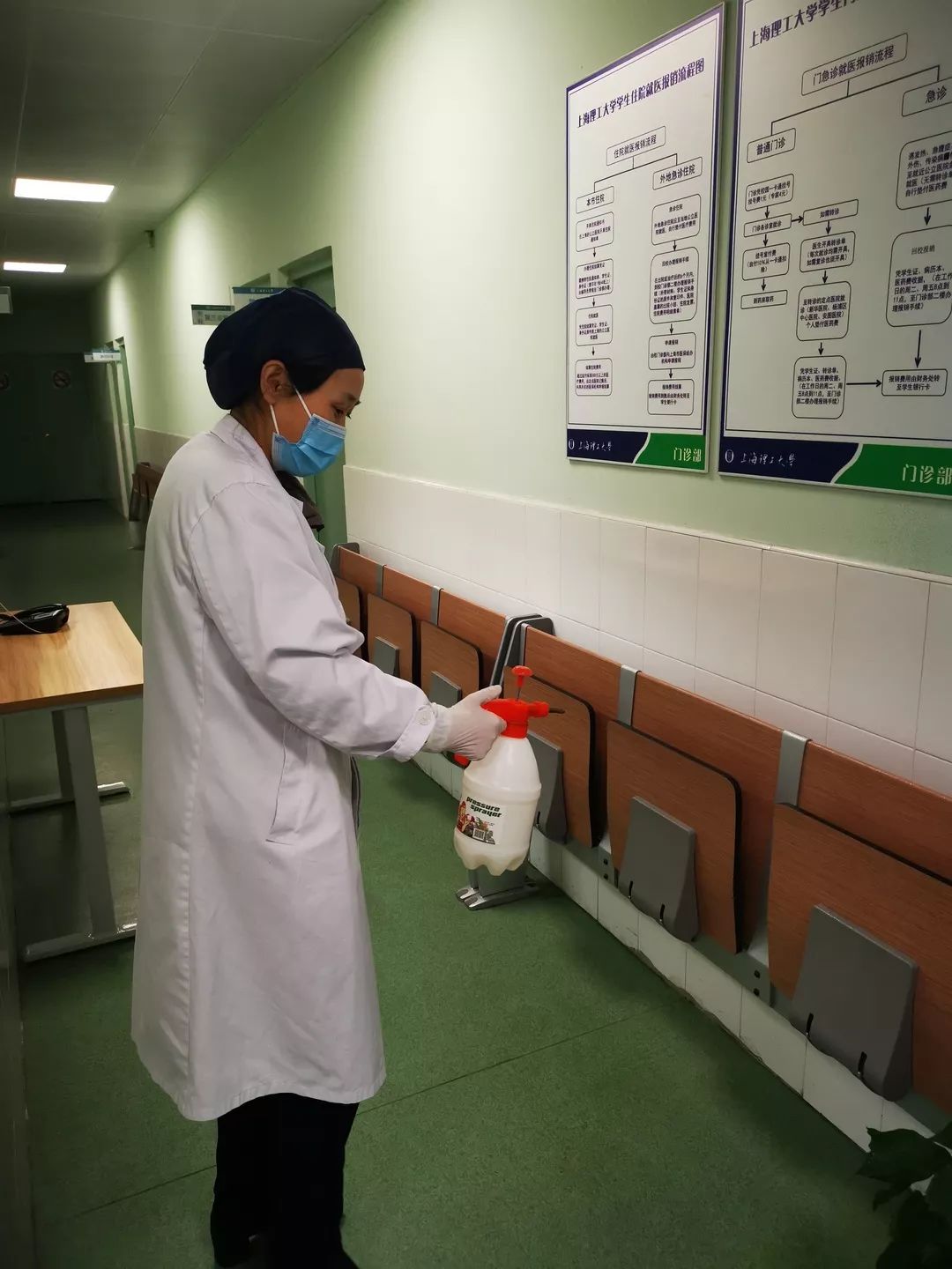 李医生进行每日例行消毒 对李长琳来说,更多的温情倾注给了留校的学生。帮转诊的学生叫车,上门为发烧学生量体温、送口罩,每天询问密接学生的情况……版艺学院的田同学1月份从武汉返校,在校隔离期间,李长琳每天都会给她发微信,“体温多少度、身体感觉怎么样”“家里情况还好吗”“午饭吃的什么”。“孩子还小,一个人在寝室,我们不仅仅要关心他们的身体健康,更想在心理上给些疏导。”李长琳说道。