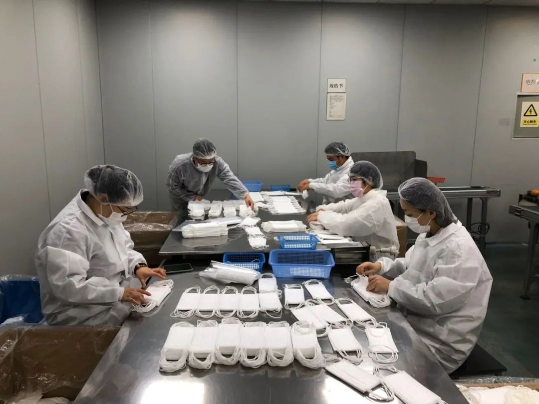 我们的工作,上午的干劲最足。一个个手脚利索,流水线搬来的口罩,零零散散4000枚左右一箱,我们一个小时左右即能完成分拣、去次、点数、封装,做的过程中大家不仅比速度,更比质量。不过让大家为难的是喝水,尽管施师傅不时让我们喝口水,但水杯不能带入车间,车间内也没有厕所,渴了要出去,如厕要出去,而出去必需脱下防护服等装备,回来又是一次必需按着规定的步骤才能进入车间,费事费时,于是忍着不喝水、不去厕所,待到午餐时略微补充一些水,如此一来,大家总觉口干舌燥。我们的工作,到了下午最难熬。除了缺少水分的补充,与平时完全不同的工作环境让初来的我们颇为不适,车间数十台机器开足了马力,到了下午每个人的脑子被吵吵闹闹的“咔嗒”“咔嗒”声震的昏昏沉沉,望着流水线上一箱接一箱不断送来的口罩,大家渐渐失去了动力,大脑也仿佛失去了控制,随着心里的一声叹息,手上的动作便慢了下来。施师傅说不妨休息休息,大家嘴上说好,却没有人愿意停下,我们互相看了看彼此,几句简单的问候、简单的鼓励,会心一笑,立时又提起精神,一起拼到了最后,因为比起医护人员们为了挽救患者所费的辛苦,我们的付出算得了什么?第一天结束,我问小马感觉如何,她说收获很大,受益很多,我们做了那么多口罩。我知道她被口罩蒙上的脸笑的很甜。)
