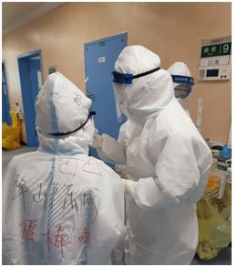 工作时我们看不到各自的脸,休息时我们独自一人,不能面对面交谈。即使碰面也是带着口罩,可能在战役结束之后,我都记不住你们的脸甚至姓名,但是你们的努力和付出都深深的印在了我的脑海里。每次脱下防护服、护目镜和口罩,走出缓冲区的时候,我们都会特别的兴奋。病人的治疗因为我们得到了保障,病人的病情稳定了,口罩压痕的疼痛、防护服的胸闷不适、起雾的护目镜遮挡掉的视线、湿透的衣服,都会被一次次成功交接后的幸福感代替,因为我们又成功地站好了一班岗,我们离胜利又前进了一步。