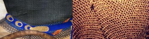 古代绘画(天津博物馆藏阿玉锡画像)中的锁子甲和实物锁子甲对比图: