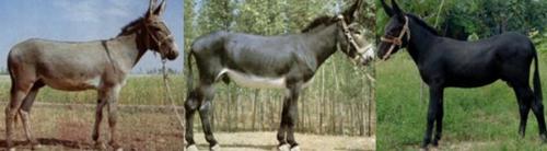 因人工培育,家驴有很多地方特色品种同时存在。按体型分有大中小三种,1)大型驴(左)体高在130厘米以上,体重260公斤左右;中型驴(中)体高在110-130厘米左右,平均体重180公斤左右;小型驴(右)体高在110厘米以下,体重130公斤左右。其中小型驴一般叫毛驴,有的大型驴的体型超过一般蒙古马。军队中用大型驴驮载成为现实。但驴脾气不好,所以应用有限。