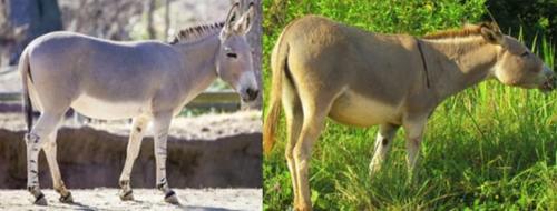 先要说说战争运输中的其他役畜。家驴:家驴的祖先是非洲索马里(左)和努比亚野驴(右):