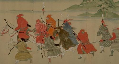元代出现的布面甲是用布帛做表里,表面钉甲泡,内衬铁甲片,其形制完全是一件长袍,兼有防寒效果,这是我国最后一代铠甲,明后期与清代基本都采取这种甲衣。日本画《蒙古袭来绘词》描绘出它的形象: