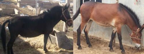 骡:在世界范围内用马和驴繁殖骡是公元前2000的事。西周到战汉汇编成文的《逸周书》记载的駃騠即为驴骡。《吕氏春秋》载:春秋时期晋国的赵简子(赵鞅?-前476年)有两白骡而甚爱之。如这个白骡确指马驴杂交的骡的话,明代马中锡的《中山狼传》中和赵简子唱对手戏的东郭先生的驴就可能是真实的,如无驴哪来的骡呀?汉代《盐铁论》中的“赢”可能为骡,晋郭璞注解《尔雅》:赢者马(母)牝驴(公)牡所生,似驴而健于马。骡有两种:公驴和母马杂交生出的后代被称为马骡(左),也可以称为骡。公马和母驴的后代被称为驴骡(右):