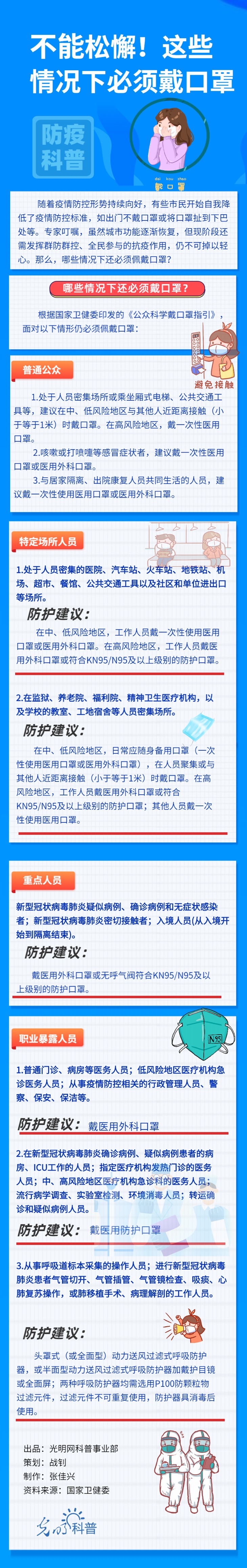 【防疫科普】不松懈、不侥幸!这些情况下必须戴口罩