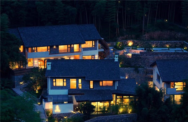 当你在莫干山夜间坐着小巴车经过,人们说,“看,那就是裸心”。隔溪水相望,山凹中零星闪亮的火光,圈起一座神秘的城堡轮廓,那是裸心的接待中心。