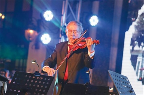 刘西拉教授登台,献演小提琴曲目《叙事曲》。 本报记者 叶辰亮摄