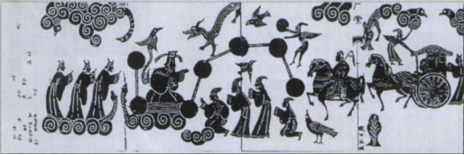 ▲天帝乘坐北斗之车巡天(东汉武梁祠)