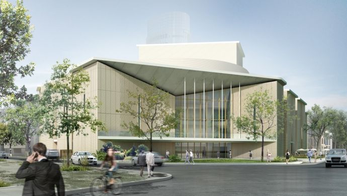 记者日前走进上海音乐学院汾阳路校区,一片正施工的建筑工地出现在眼前。一座全新的艺术殿堂———上音歌剧院将从这里拔地而起:用弹簧阻振器方式构成的“全浮”结构,将为靠近1号线地铁站的剧场隔振降噪;设计巧妙的可移动天花板和矿棉吸音板,则将使剧场呈现出最佳混响效果。预计2019年建成的上音歌剧院会是一幢五楼综合体,其中地下三层,地上两层,拥有可以容纳1200人的歌剧演出厅,以及四个分别用于歌剧、管弦乐、合唱和民乐排练的排演教室。届时上音将引进国内外一流的歌剧、交响乐演出在这里亮相。