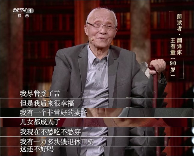 节目现场,90岁高龄的智量先生把朗读献给他生命里两位了不起的女性:母亲和妻子。