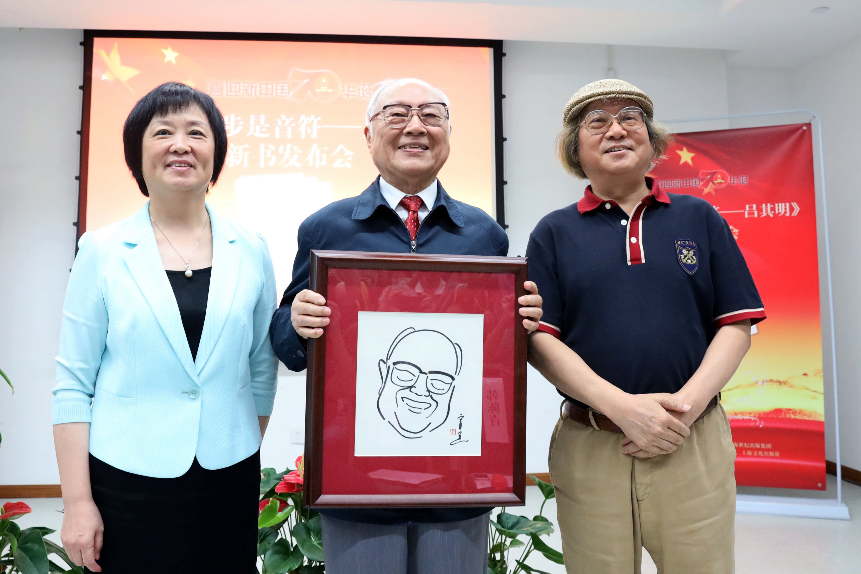 首发式上,上海市美术家协会主席郑辛遥和上海市书法家协会主席丁申阳分别向吕其明赠送了为他特别创作的美术、书法作品。郑辛遥为吕其明送上的是一幅漫画肖像,将自己对老艺术家艺术精神的理解,融入笔触之中。
