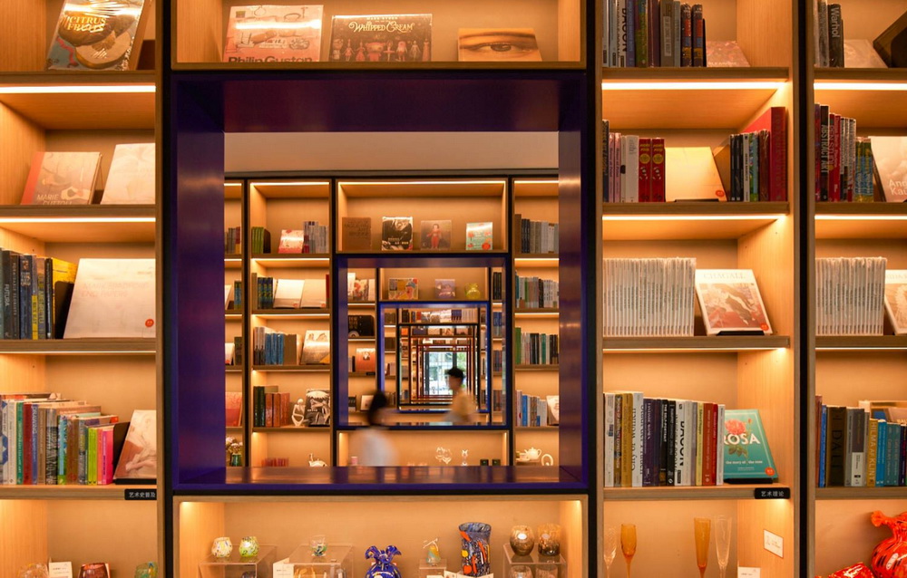 书店在形态上分为东、西两馆,形成了古今对照。其中,东馆图书区以“赛博探新”为主题,精选1900年之后的艺术潮流图书。西馆的图书区以“烂柯考古”为主题,精选了1900年之前的古典艺术图书。西馆内部特别设计圆环形的空旷场地,为读者提供安静冥想的一席之地,也提供了艺术品的展陈空间。